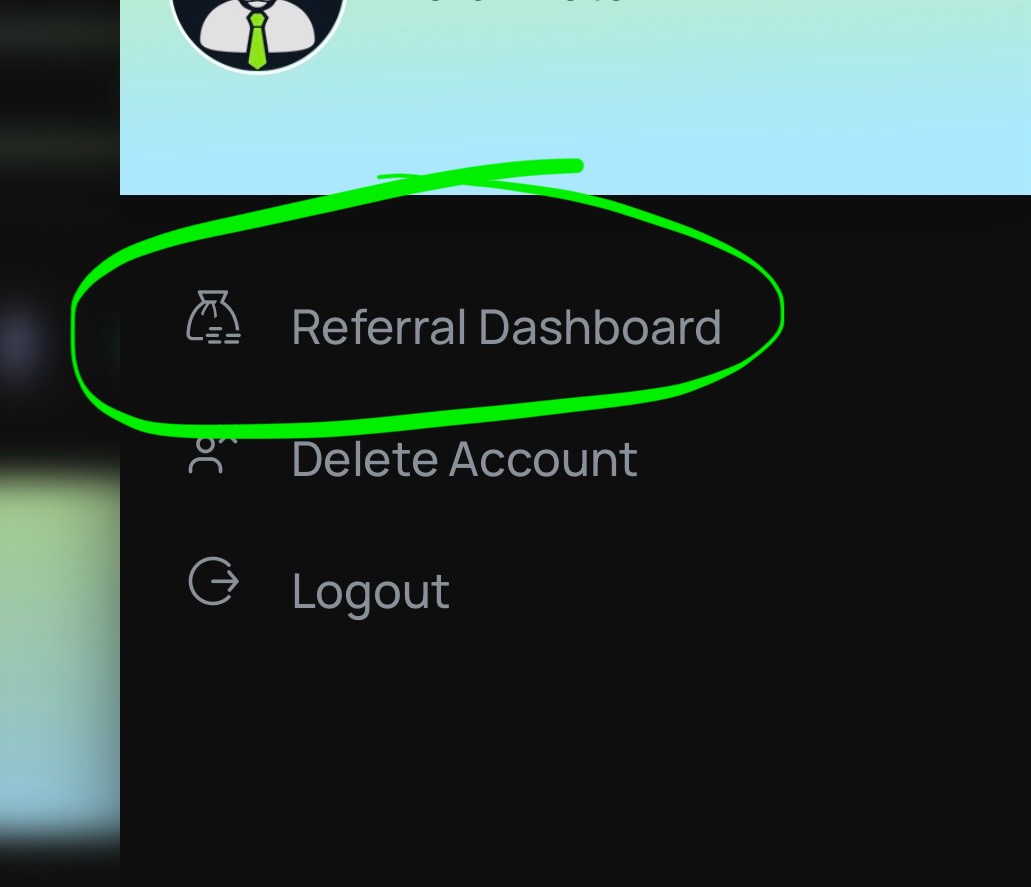 * Login to Magnum's Web App and click the User Profile icon in top right corner. Under that, click 'Referral Dashboard' to go to your referral stats and get your referral code.